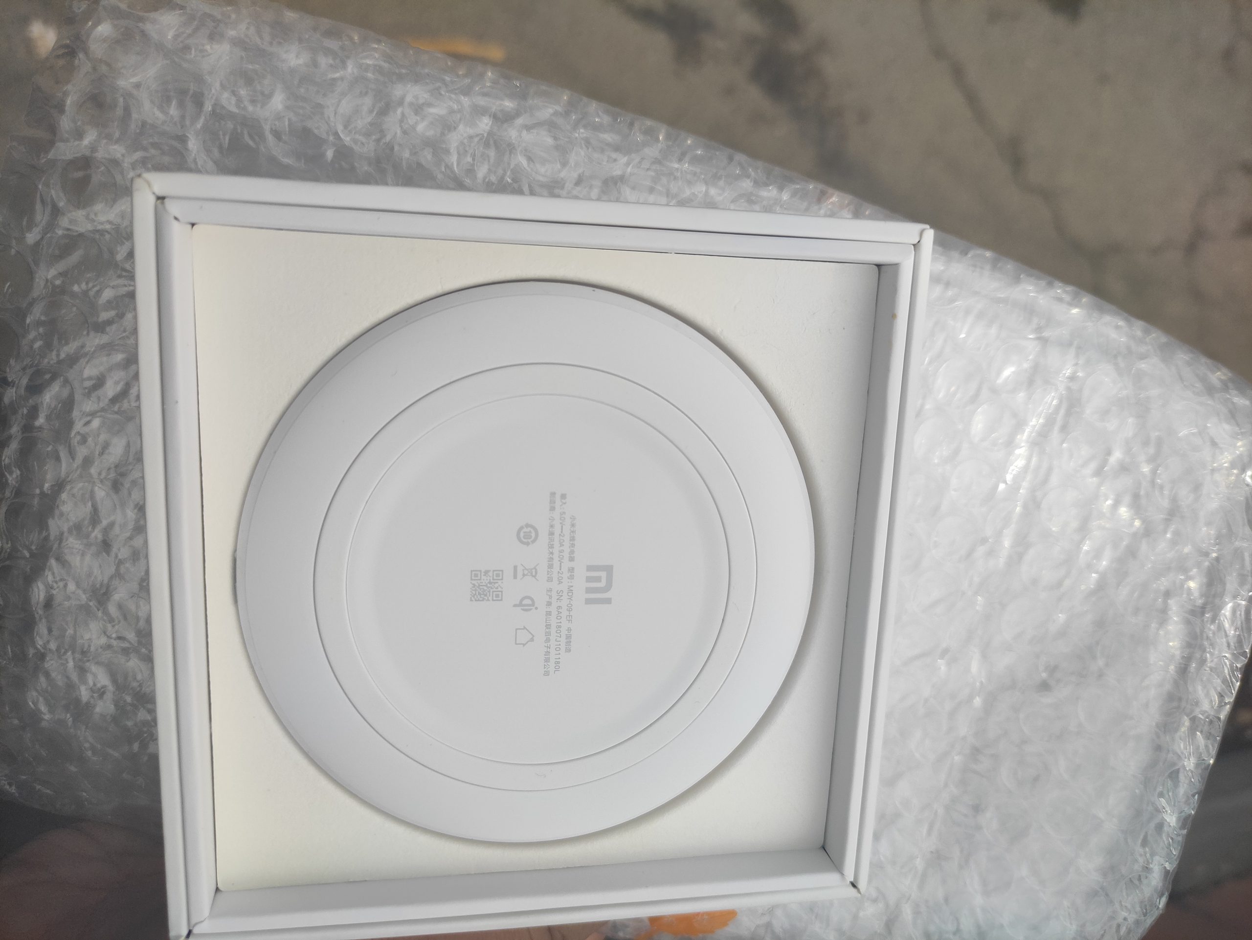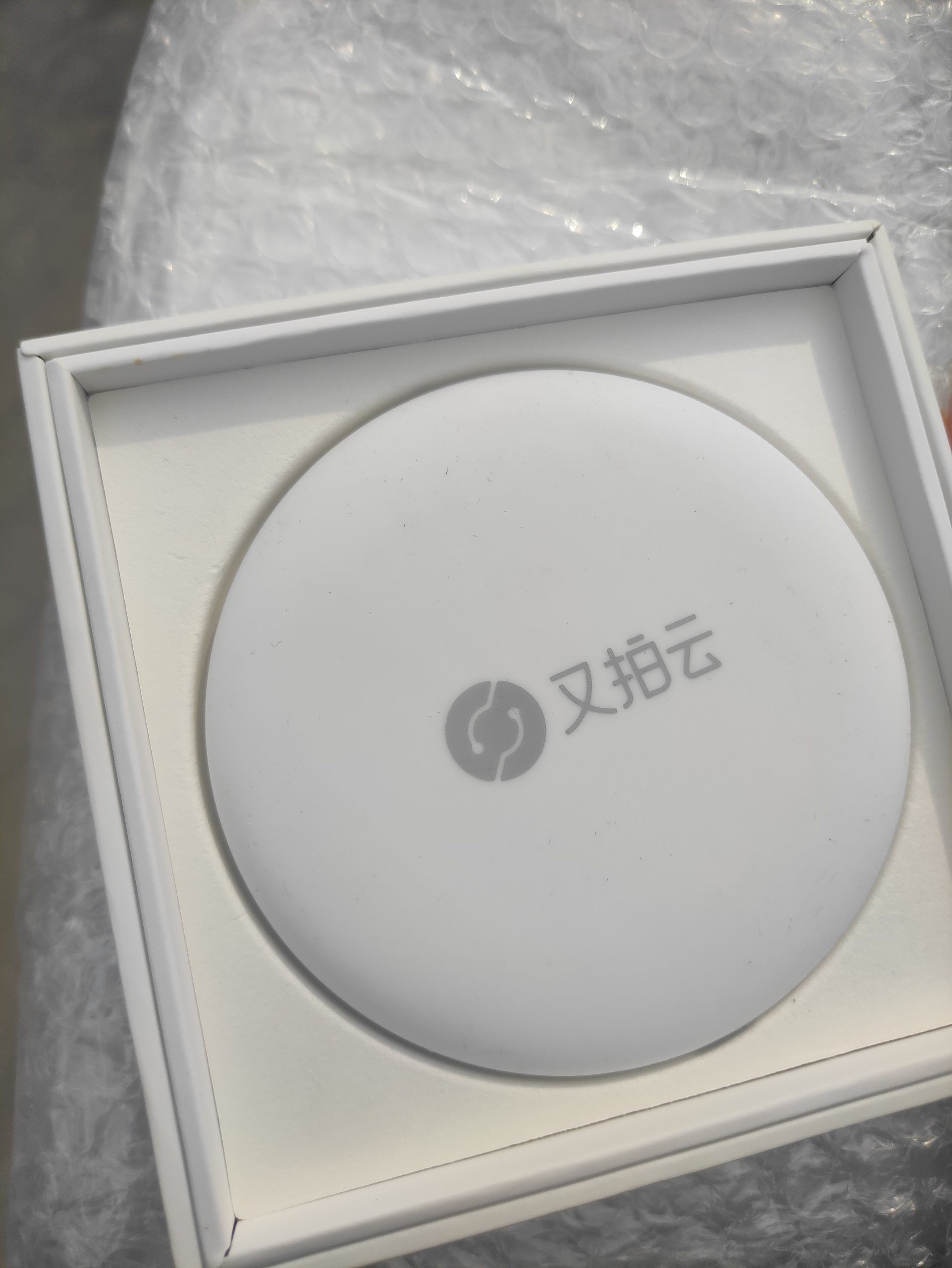 拿开这些,看到印有又拍云logo的小米无线充电器。