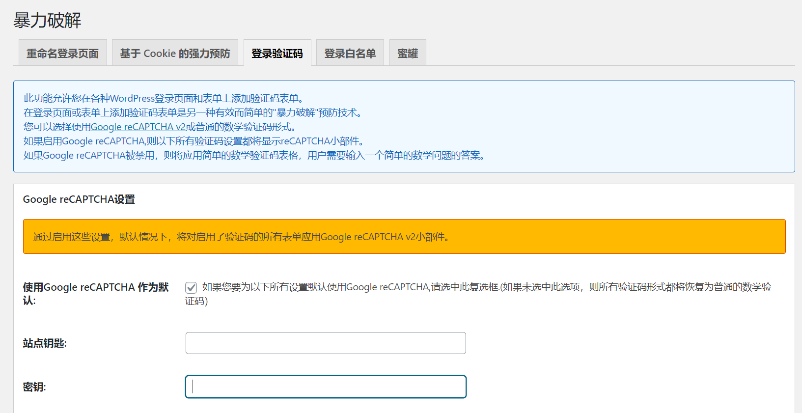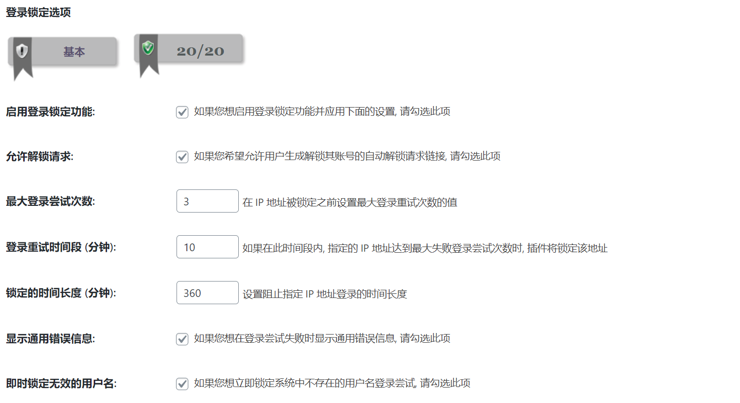 插件:https://cn.wordpress.org/plugins/all-in-one-wp-security-and-firewall/