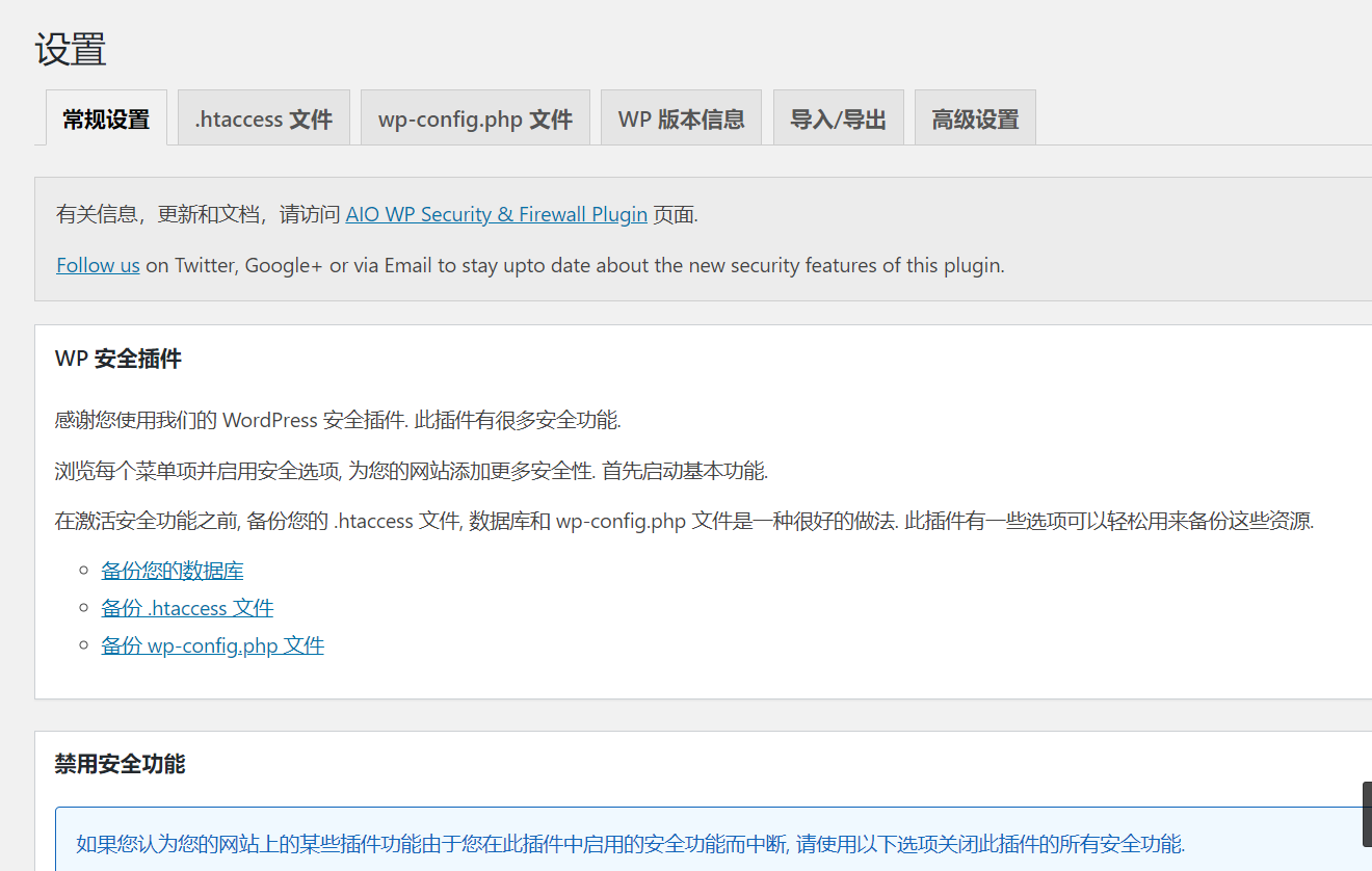 搭建完博客,账户安全也要引起重视。wordpress本身的账户安全功能几乎没有,甚至连个登录IP等无法记录,这时就需要一个插件来补充安全功能了。本文介绍的是All In One WP Security插件
