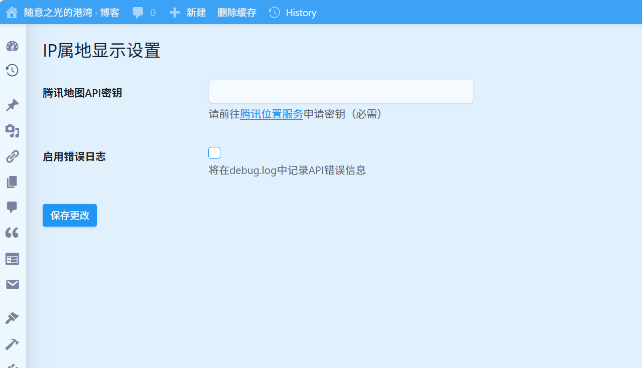4.前往WordPress管理页面,前往IP属地设置页面填写key。