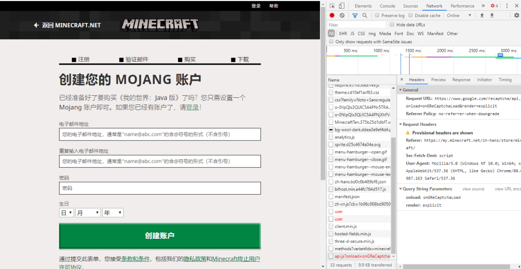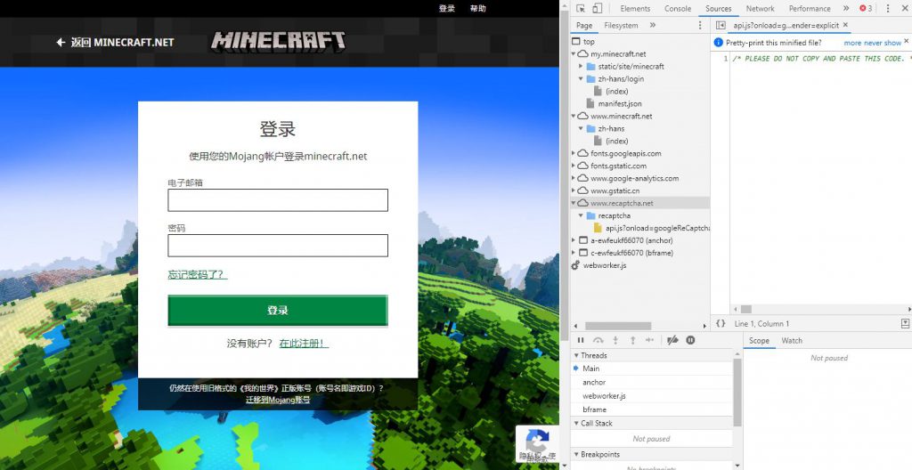 我研究了一下发现着仍然是谷歌验证码的问题现在的minecraft.net登录页