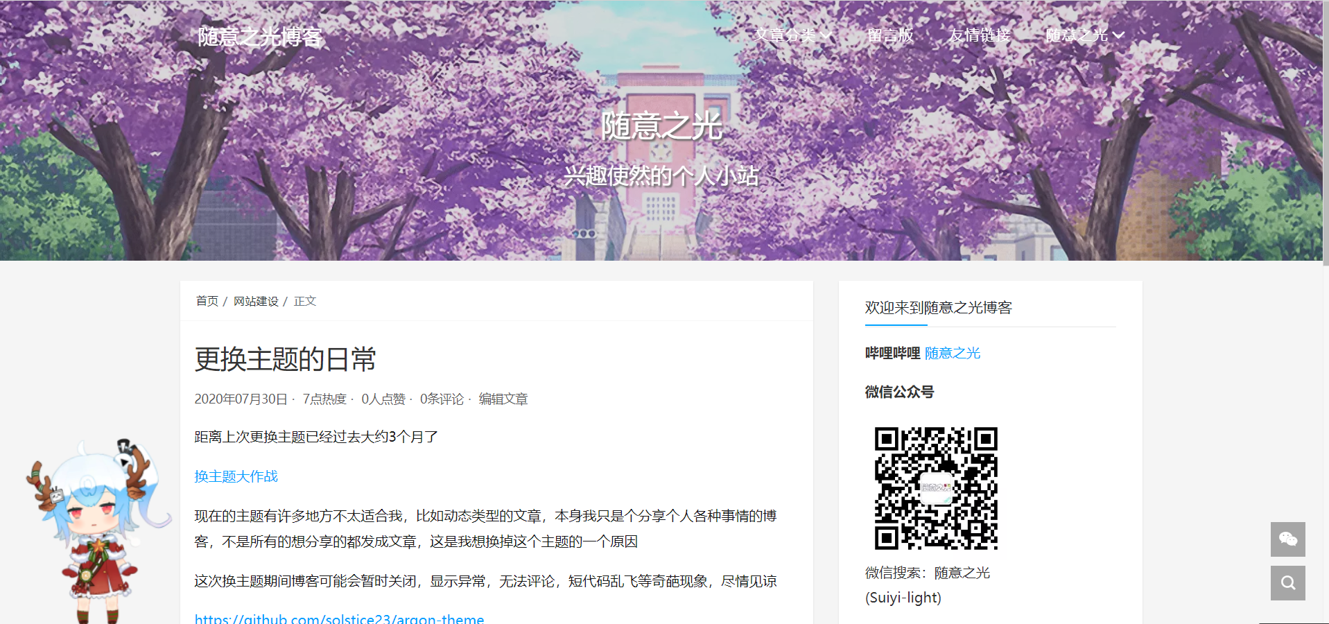 换主题大作战 2020-5-09 16:16 | 公告说明 | 随意之光 本文发布于 2048 天前,其中的信息可能已经有所发展或是发生改变。 更换已完成 第一步关闭所有插件及评论 图全没了? 第二步更换, 第三步重新启动插件 第四步宣布完成 现在这个主题看腻了,想换一个 所以这几天会出现各种奇怪的问题,敬请期待 《换主题大作战》(https://blog.suiyil.cn/677.html)由随意之光发布于随意之光博客,其中原创内容均以知识共享署名-非商业性使用-以相同方式共享 4.0 国际许可协议(CC BY-NC-SA 4.0)进行许可,转载与引用请注明出处,详见版权协议与免责声明 WordPress主题网站建设